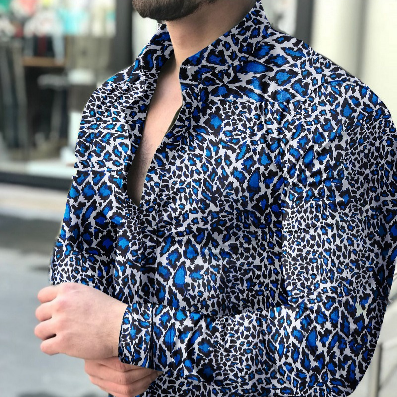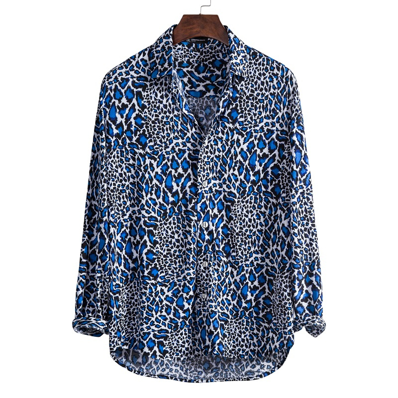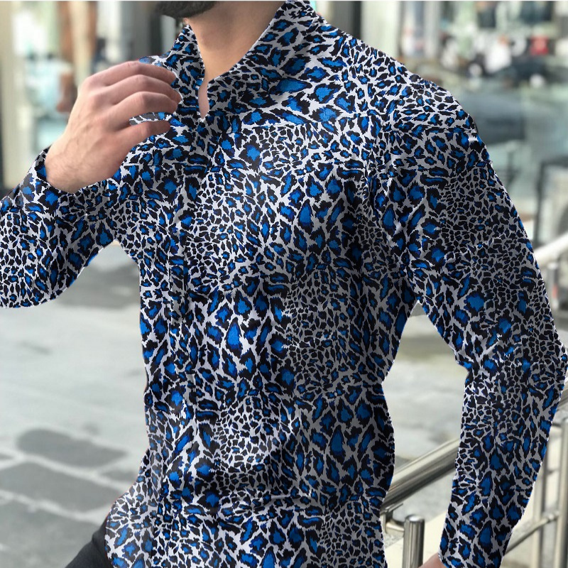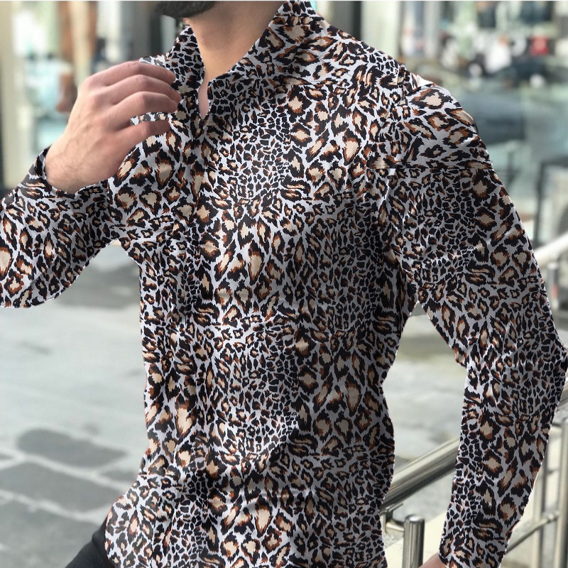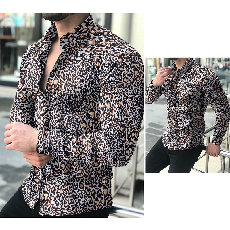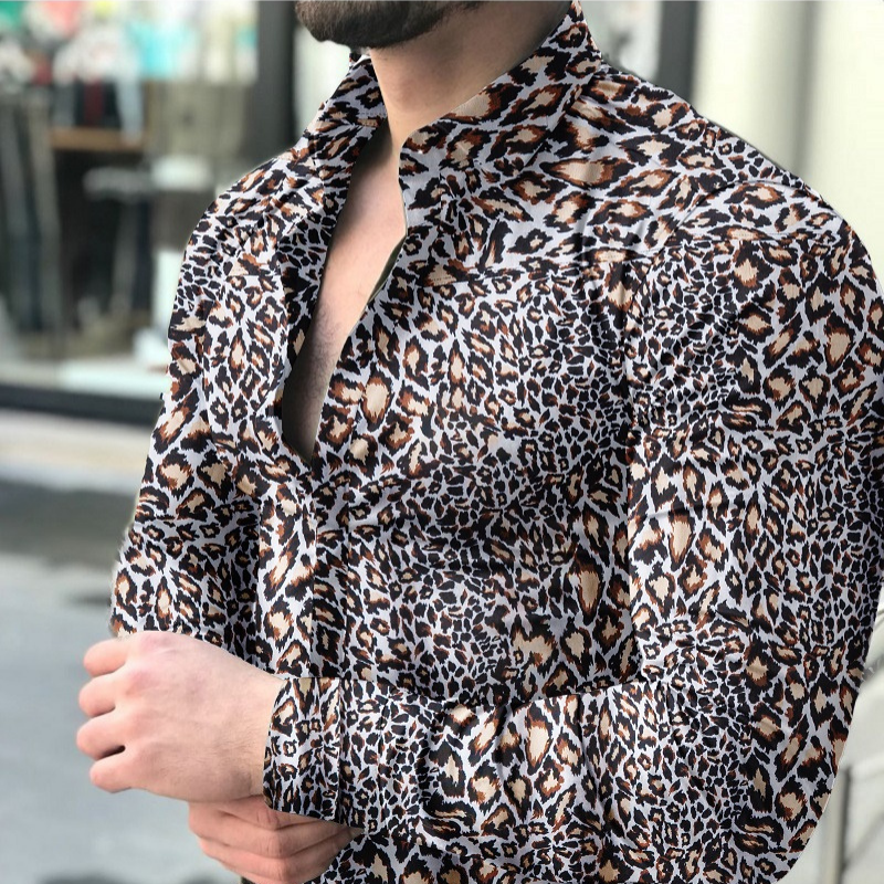 Men's causal leopard printed long sleeve shirt