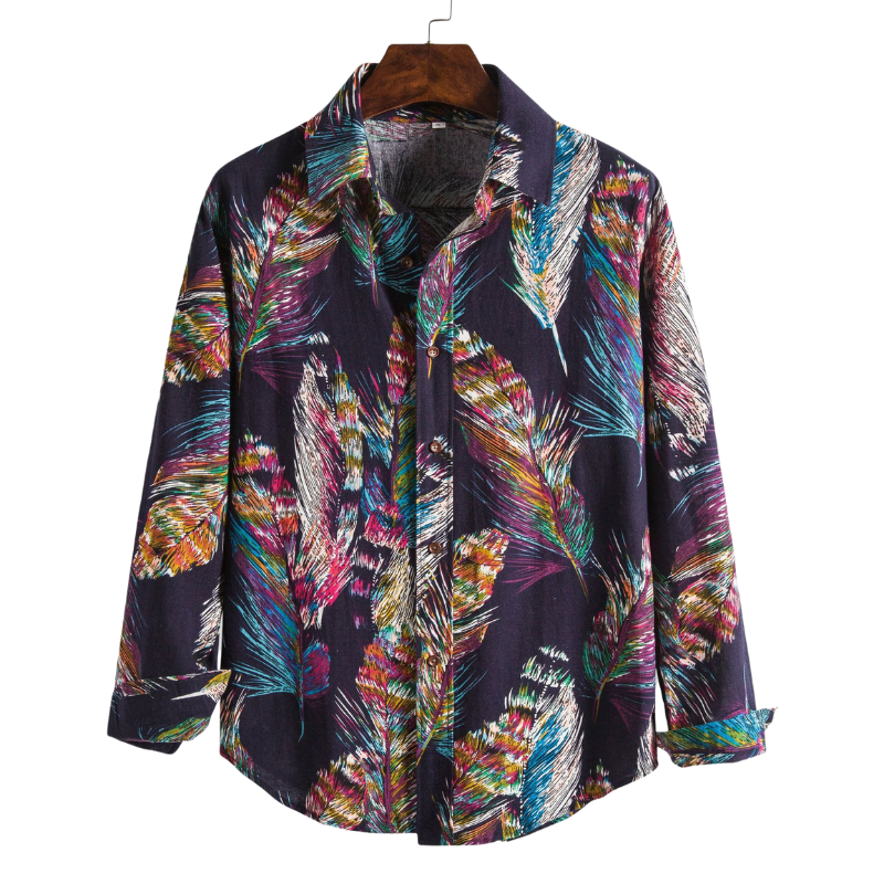 Men's Feathered Casual Slim Long Sleeve Shirt
