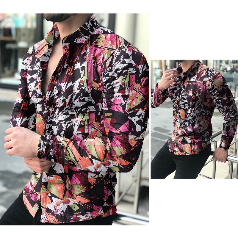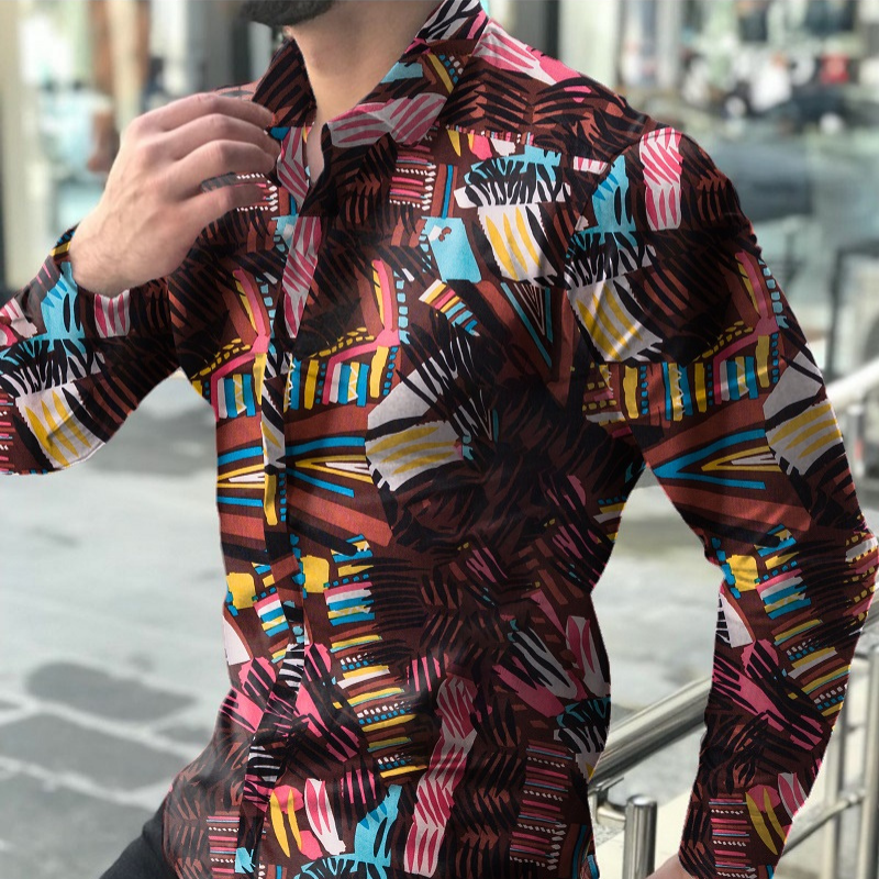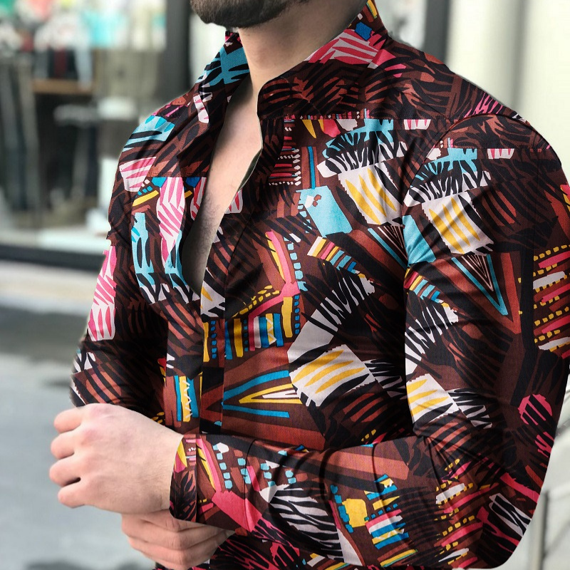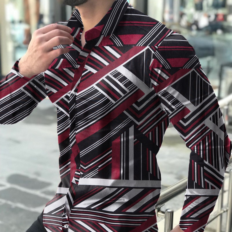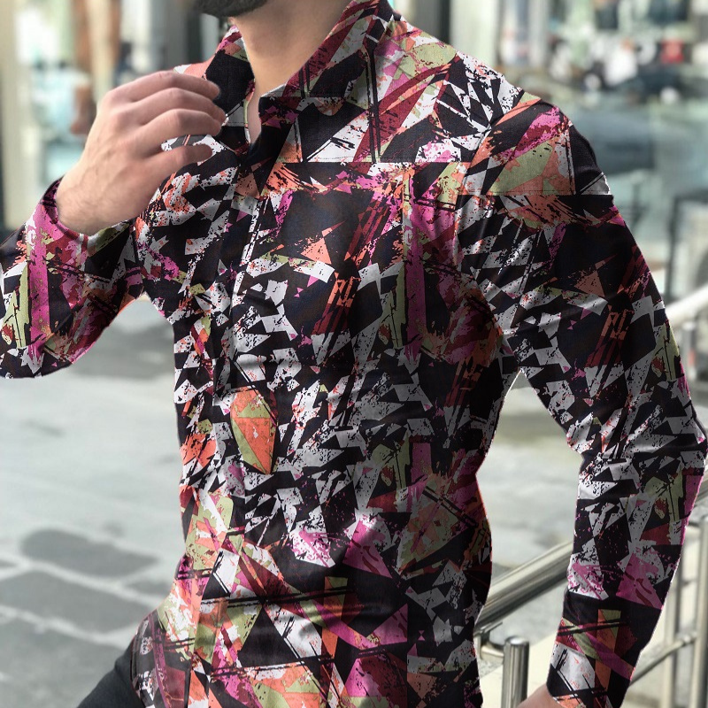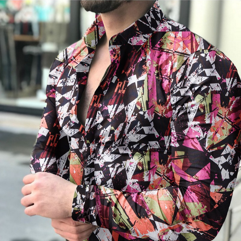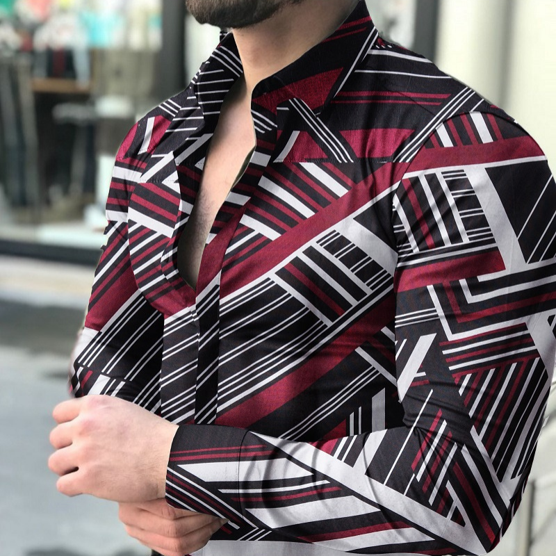 Feel comfortable and stylish with this fresh Men's geometric print casual long sleeve shirt made with premium-grade cotton, and tailored to fit just right! This may just be the missing piece to your summer and spring clothing collection!