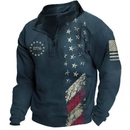 This Men's Independence Day Printed Zipper Henley Sweatshirt is perfect for celebrating America's birthday! The red, white, and blue design is eye-catching and patriotic, and the zip-up front makes it easy to take on and off. The soft fabric is comfortable to wear all day long, and the pockets are handy for carrying your phone or keys. Whether you're barbecuing in the backyard or watching the fireworks, this sweatshirt will keep you feeling festive all day long.