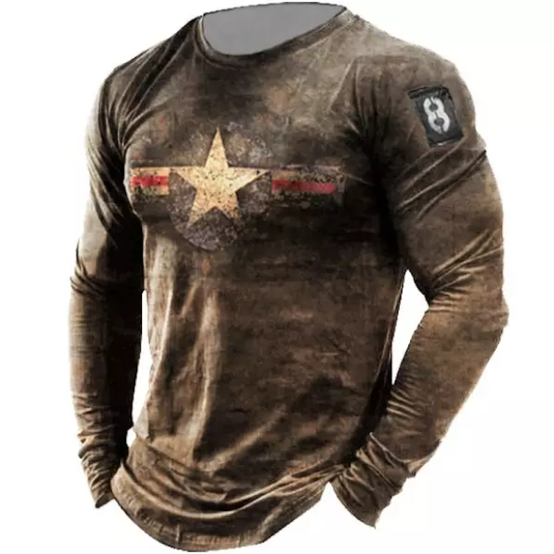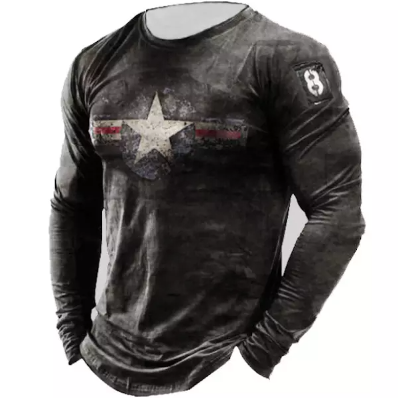 This Men's Retro American Stars Print Long Sleeve Sports T-Shirt is a must-have for any fan of sports. With its crew neck, long sleeves, and attention-grabbing print design, this tee is perfect for wearing around the house or out on the game day to show off your favorite team.