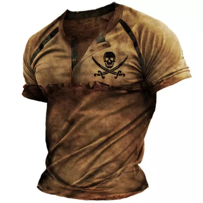 This Men's Skull Short Sleeve T-Shirt is great for daily wear. This blouse is designed for casual everyday wear and has a crew collar and long sleeves for layering over your favorite outfit. This cotton blend t-shirt features raised board shorts for added comfort and style. This men's short sleeve tee is lightweight and easy to wear. Pair it with jeans and boots for a casual look.