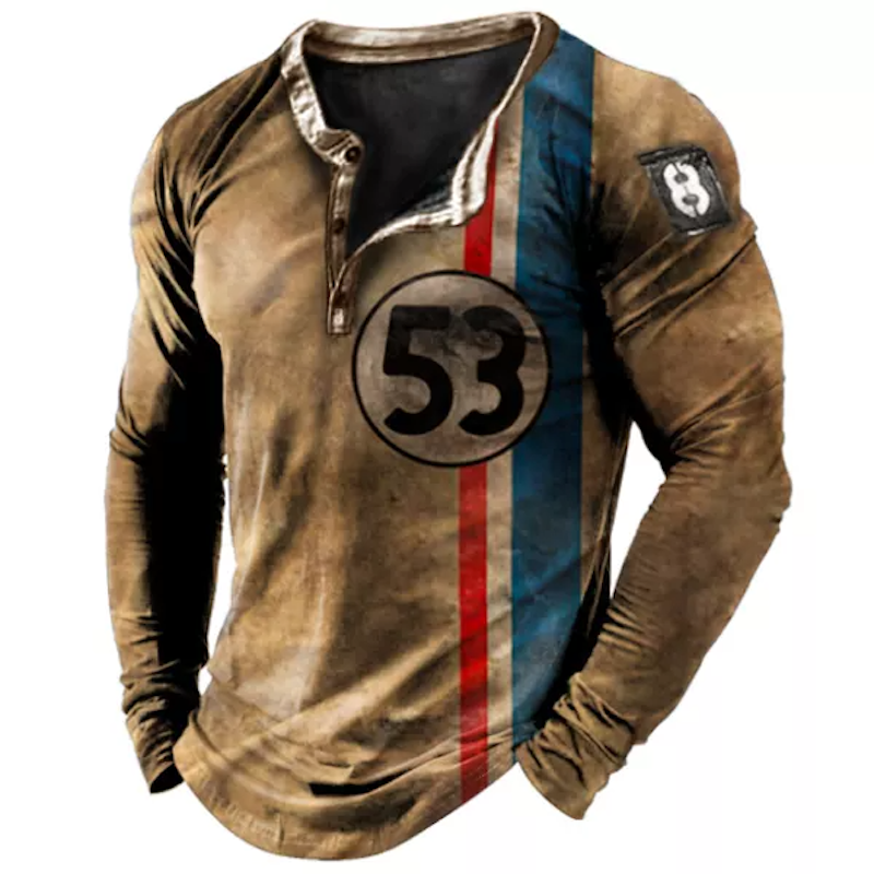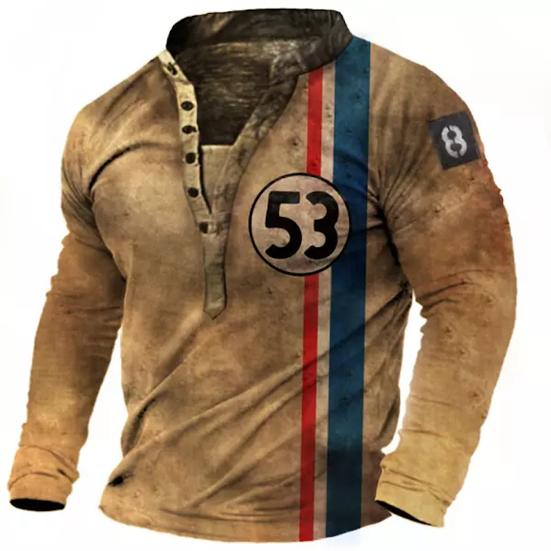 This Men's Vintage Racing Stripes Henley Long Sleeve T-Shirt is perfect for the guy who loves a good throwback. The high collar and half-placket give it a retro feel, while the long sleeves make it ideal for cooler days. The cotton blend material is soft and comfortable, and the print adds a touch of fun.