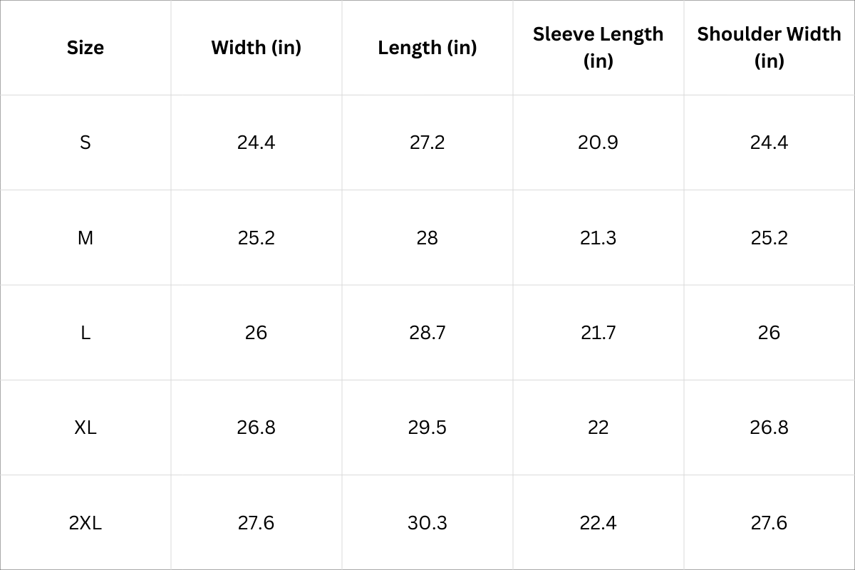 Size Chart (Inches):