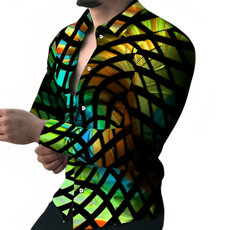 Make a bold statement with our Optical Illusion Graphic Printed Shirt. This shirt features a stunning array of geometric shapes that create a mesmerizing optical illusion. The shirt is tailored from a lightweight fabric that offers comfort, making it suitable for both casual and formal occasions!