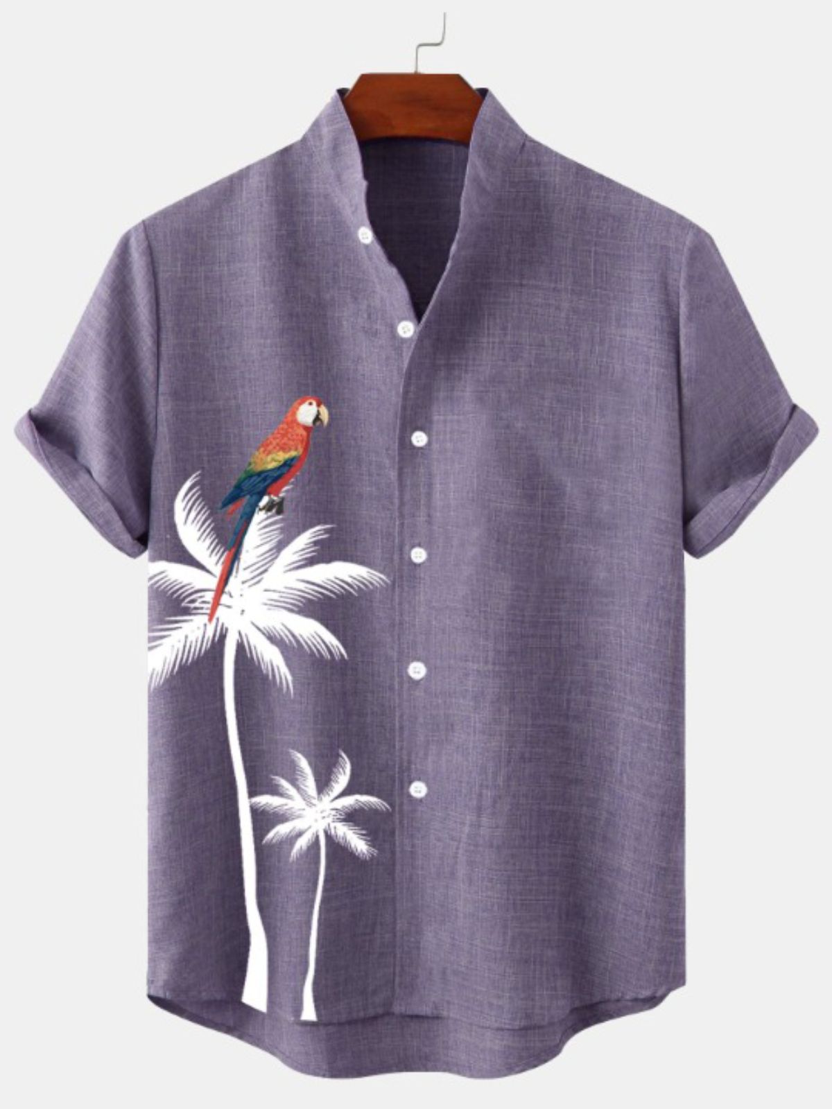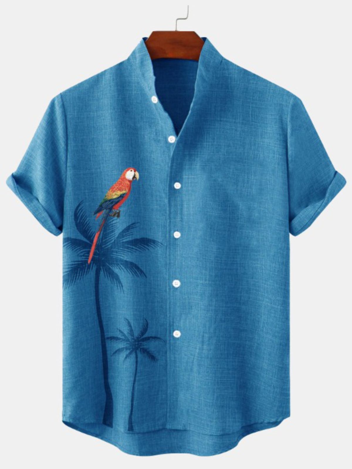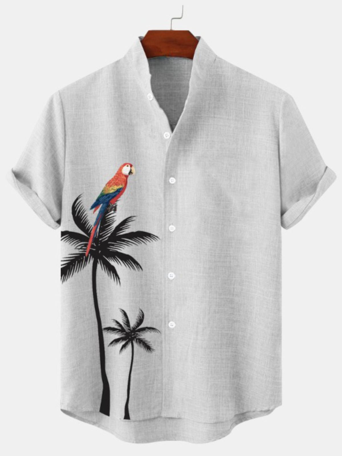 Palm Tree Parrot Print Casual Short Sleeve Shirt