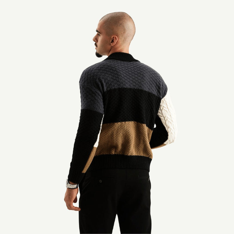 Stay pleasant and warm with this Patchwork Knit Sweater. Featuring a modern design with contrasting textured panels, with comfortable fabric. The ribbed cuffs and hem provide a snug fit, while the versatile design ensures it pairs effortlessly with casual or semi-formal outfits.