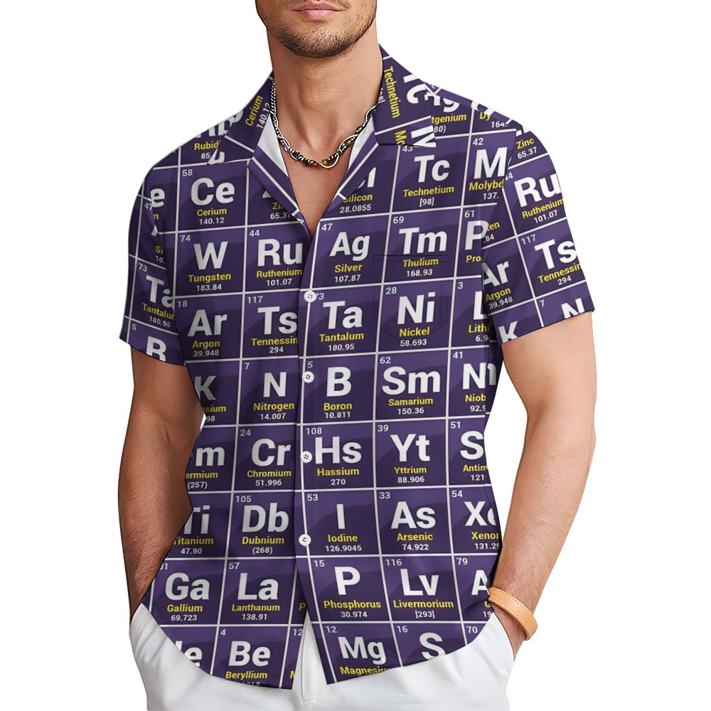 Introduce sophistication to your wardrobe with our Periodic Table Of Elements Casual Short Sleeve Shirt. Crafted from premium polyester, this shirt boasts a soft and smooth texture, perfect for summer. Its tropical-inspired print and classic collar add a touch of exclusivity to your style. Ideal for beach trips and daily outings, its regular fit and short sleeves ensure a comfortable and cool wear. Elevate your look with this timeless piece.