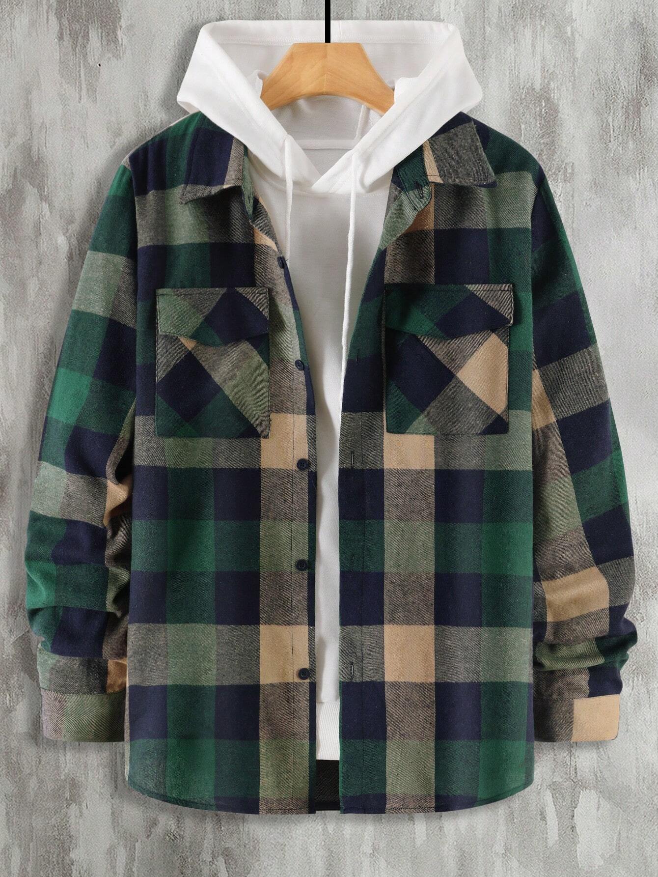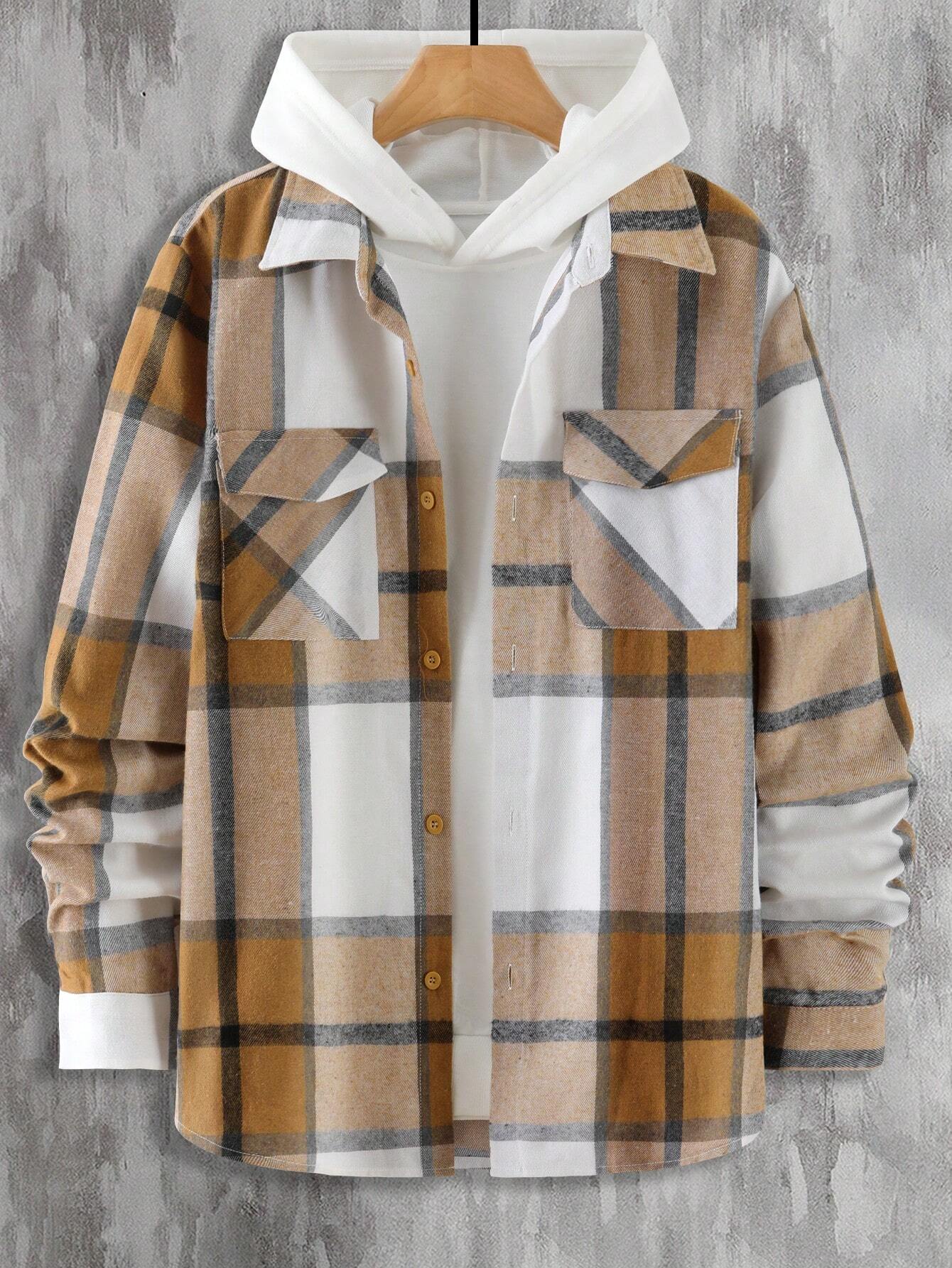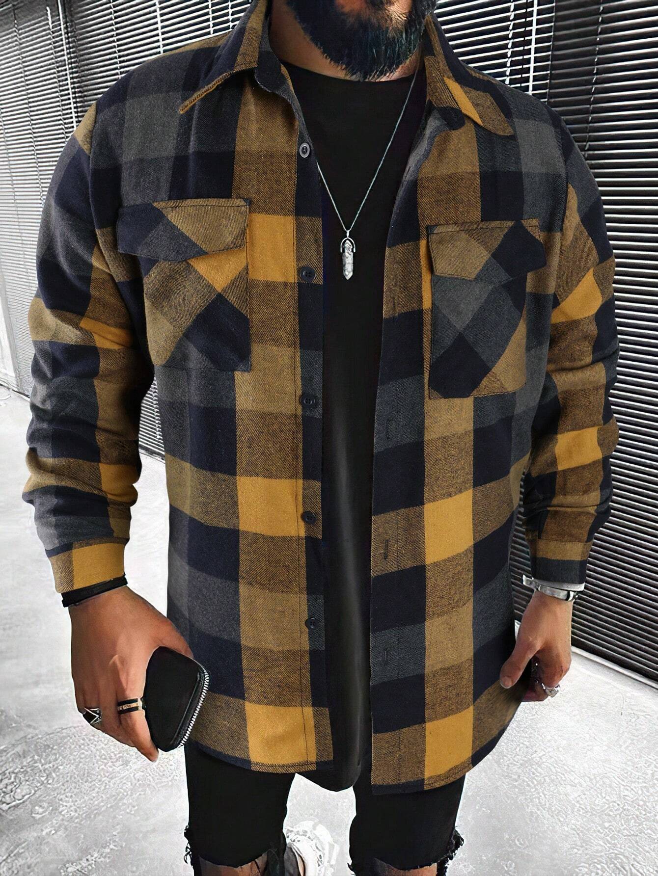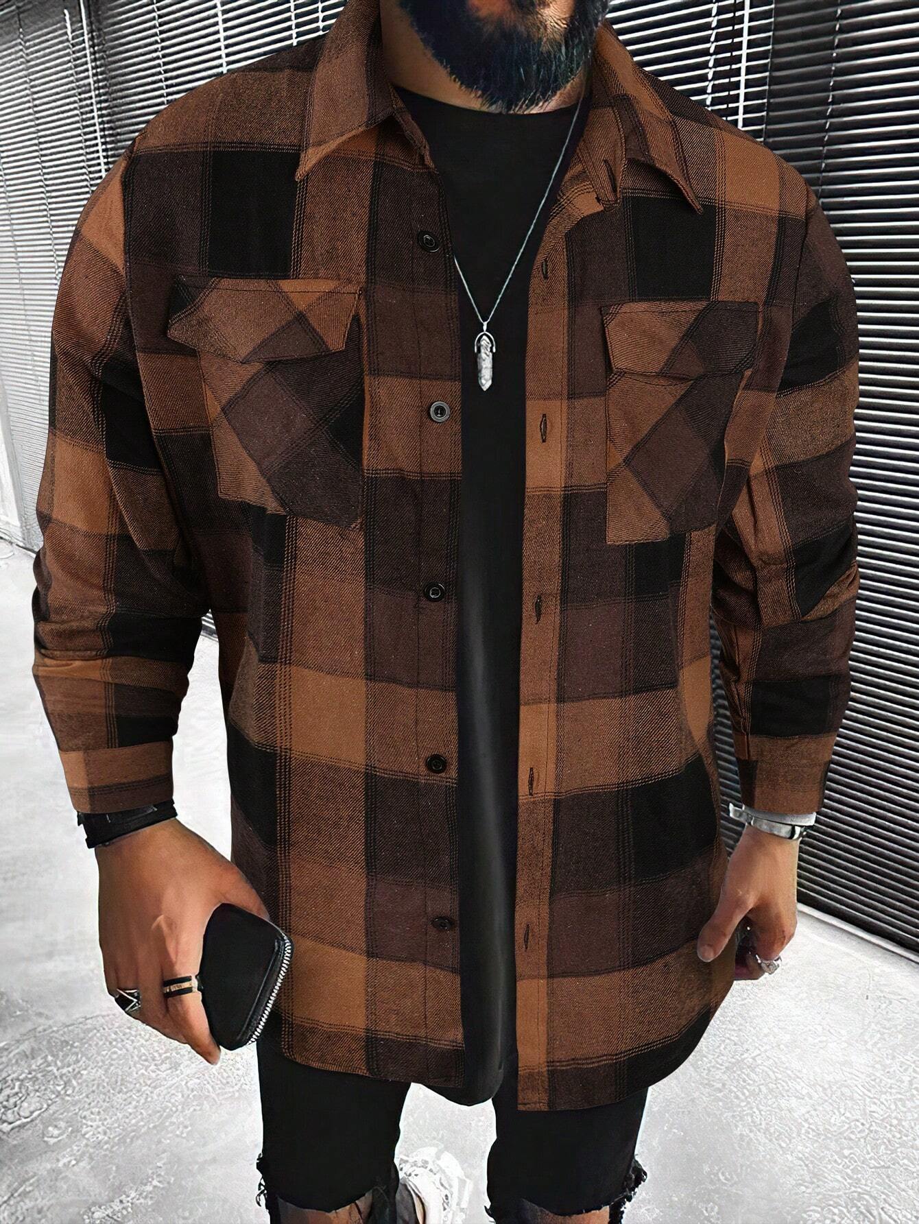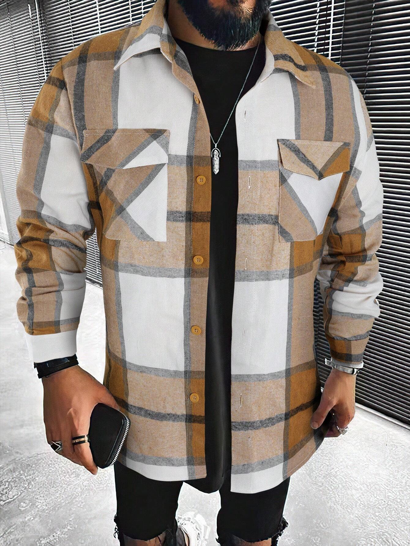 Introducing the Plaid Print Flap Pocket Shirt from Shirts In Style - a must-have for men! This shirt combines classic plaid with modern style, featuring convenient flap pockets. Perfect for a Stylish, casual look. Get yours today