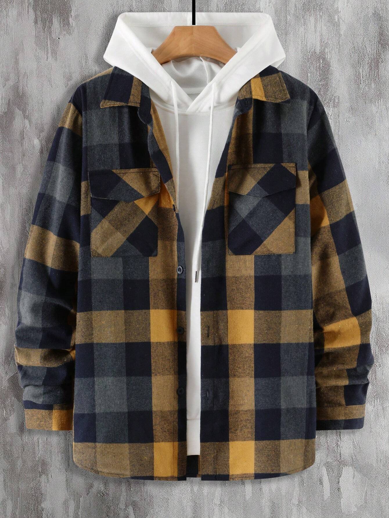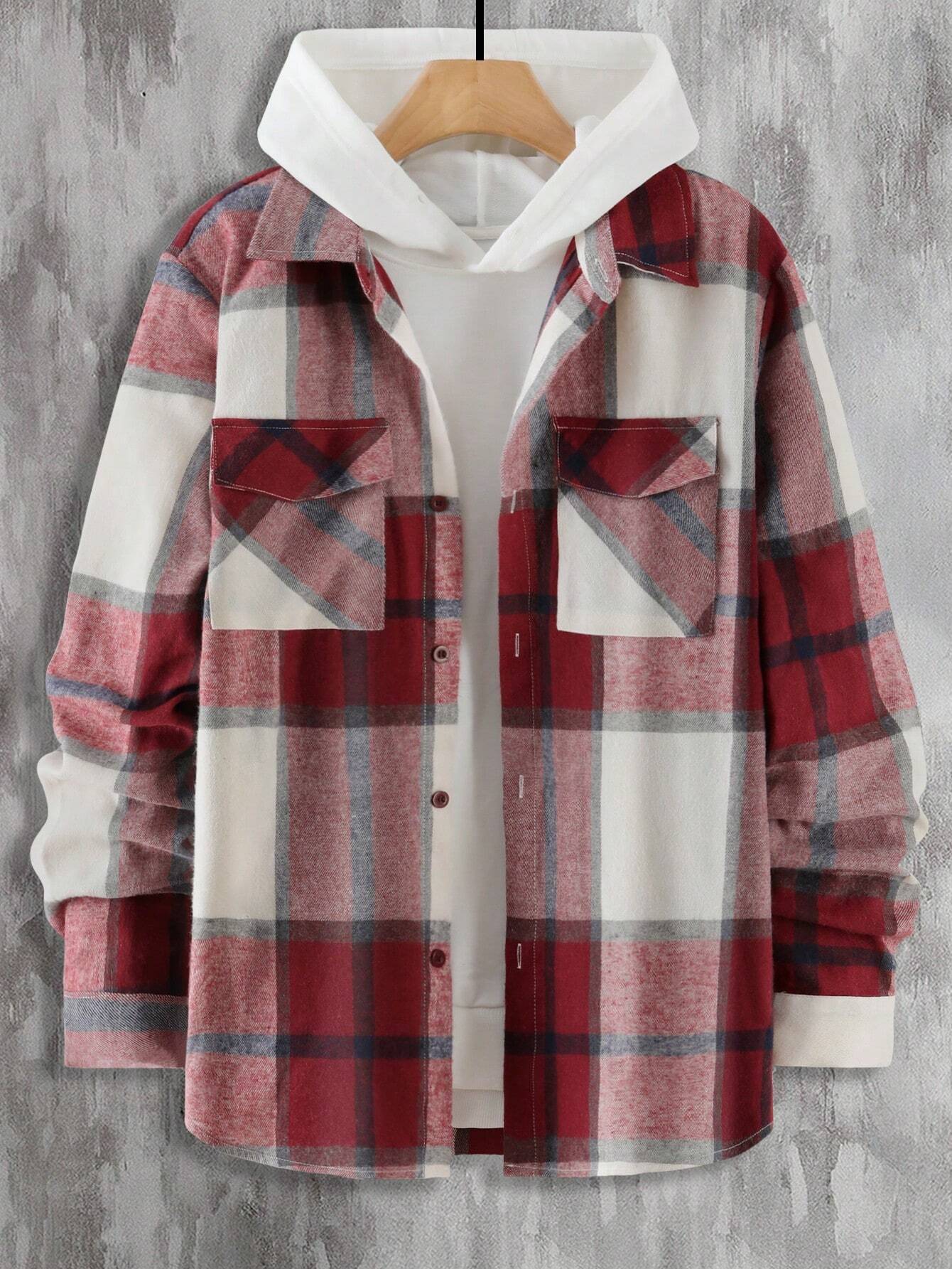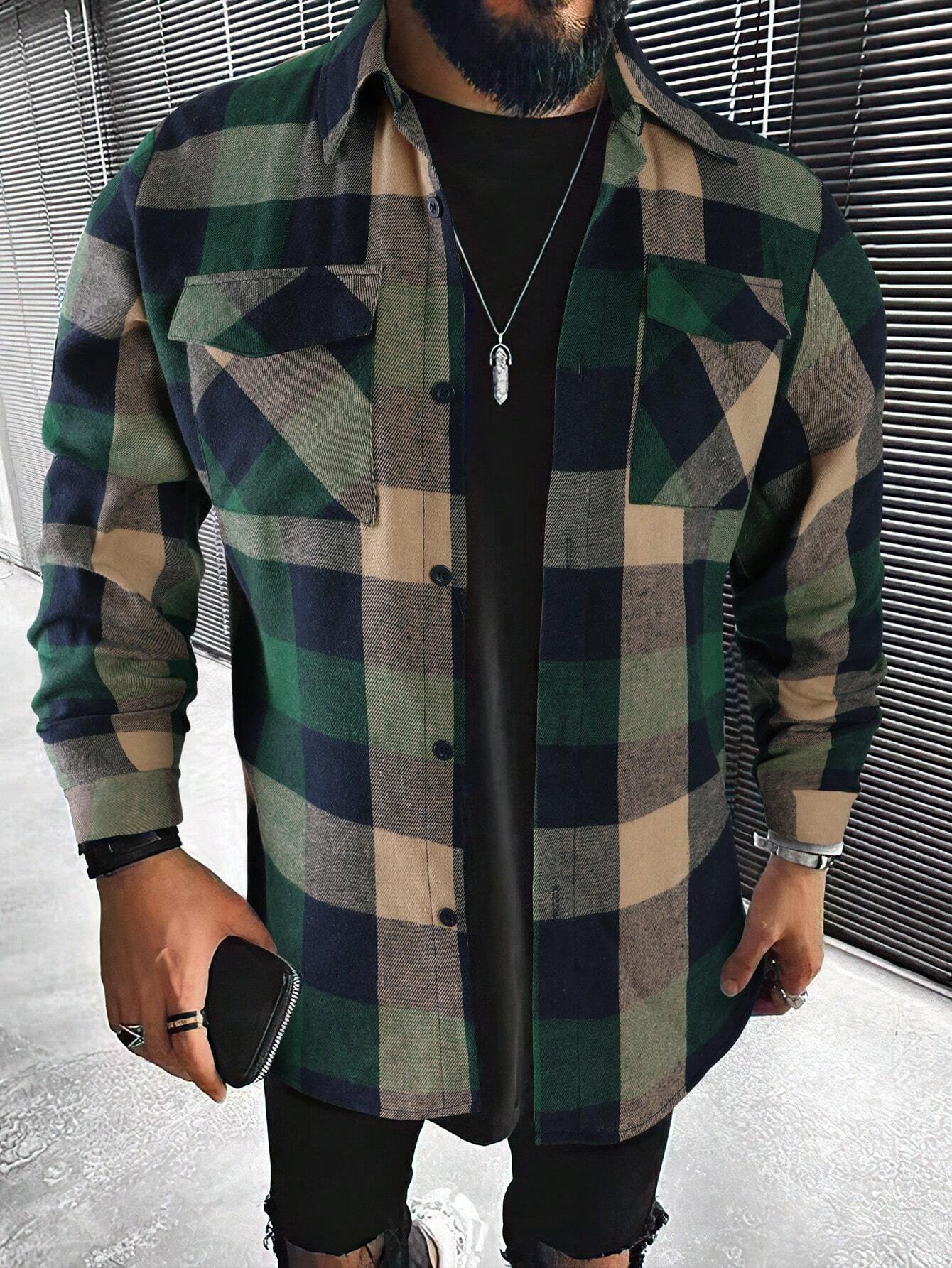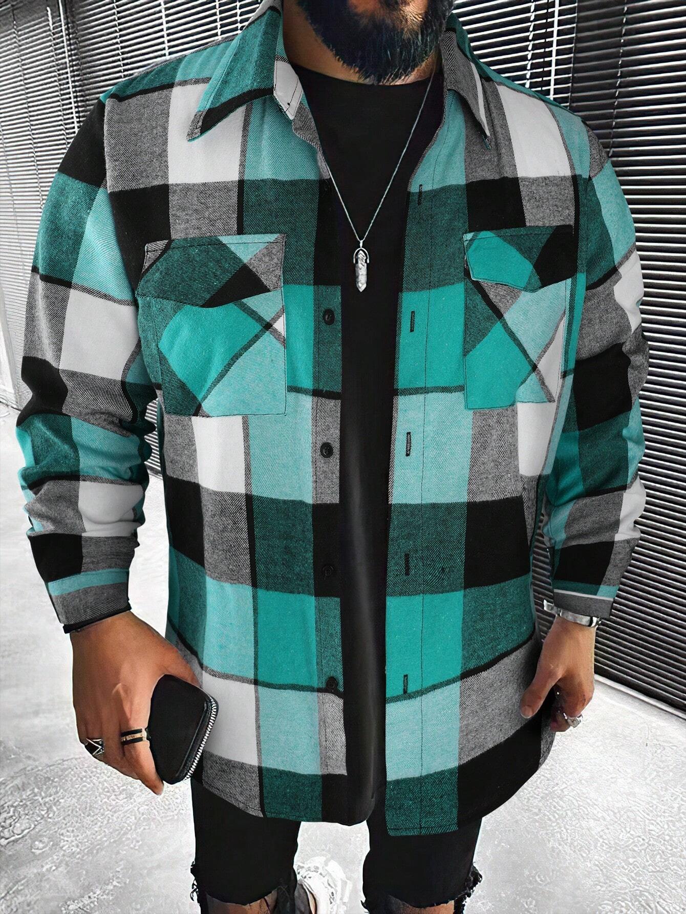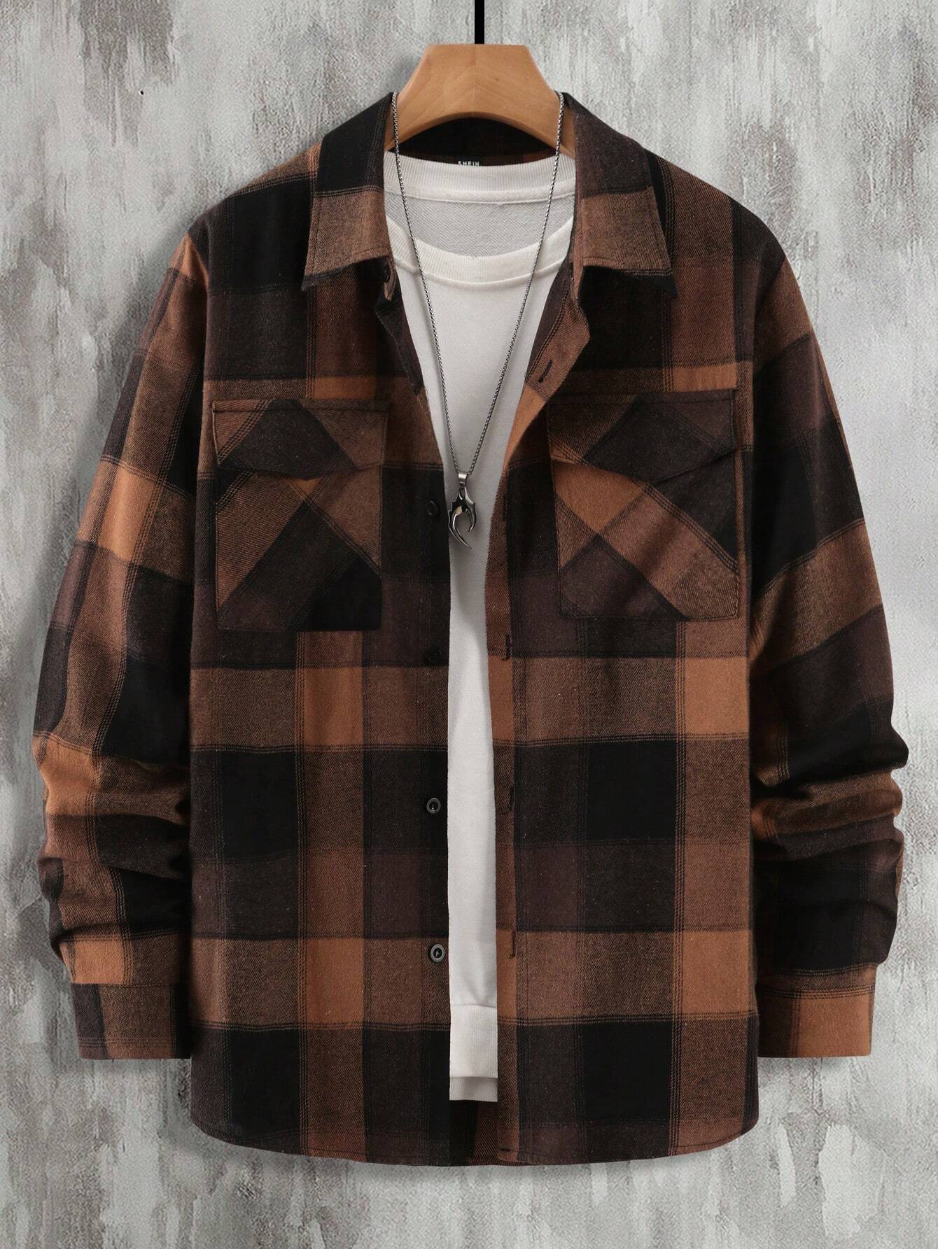 Introducing the Plaid Print Flap Pocket Shirt from Shirts In Style - a must-have for men! This shirt combines classic plaid with modern style, featuring convenient flap pockets. Perfect for a Stylish, casual look. Get yours today