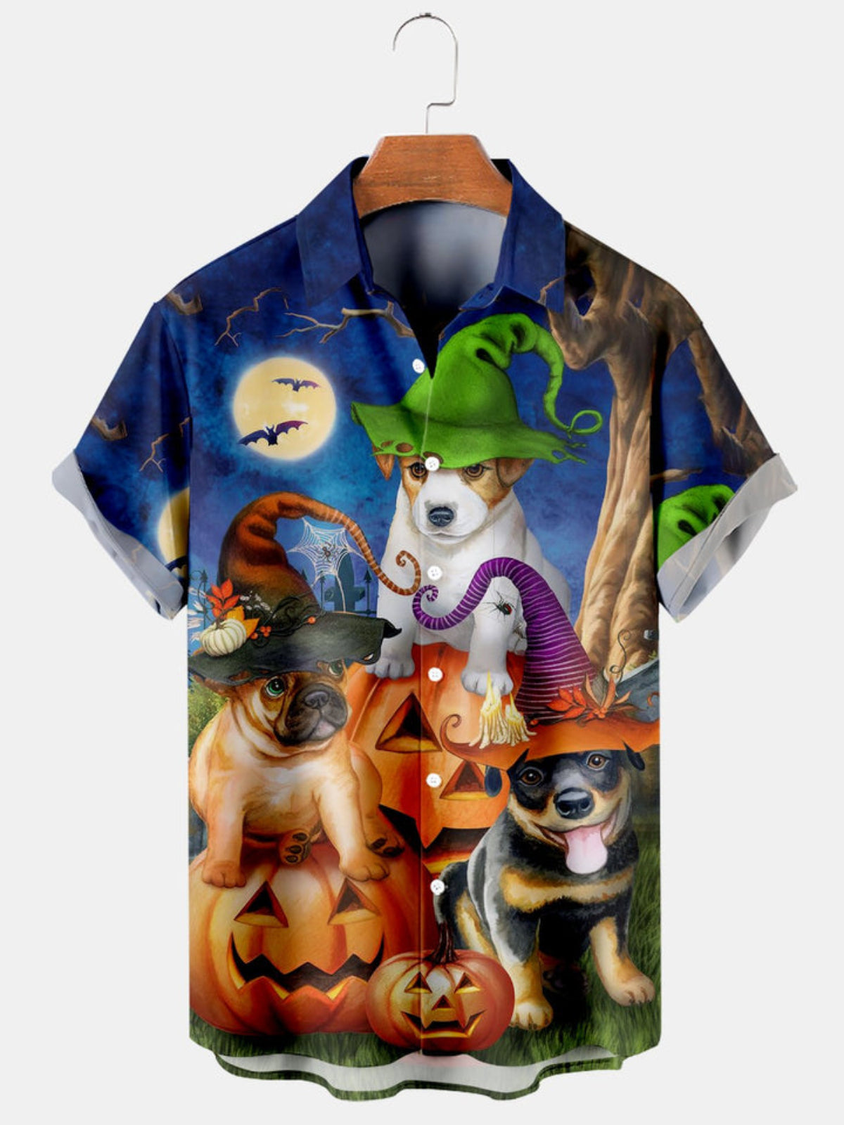 Get your furry friend ready for the season with our Puppy And Pumpkin Printed Shirt. This Halloween-themed shirt features a puppy and pumpkin pattern, perfect for your pet's festive look. With short sleeves and non-stretchy fabric, it's comfortable and stylish. Treat your pet to this adorable outfit today!