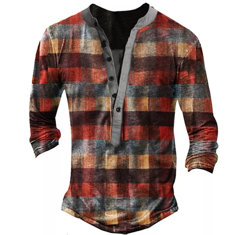 This Retro Plaid Men's Henley Button Shirt will be your go-to casual wear piece. The high collar, long sleeves, and button-down front make it perfect for any occasion. This shirt Is made from cotton fabric which makes it very durable and easy to care.