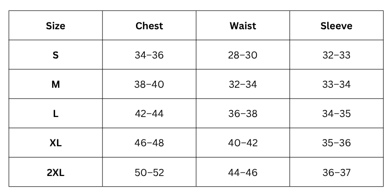 Size Chart (Inches):