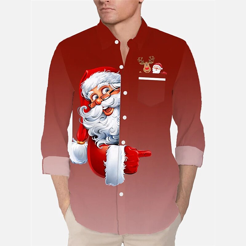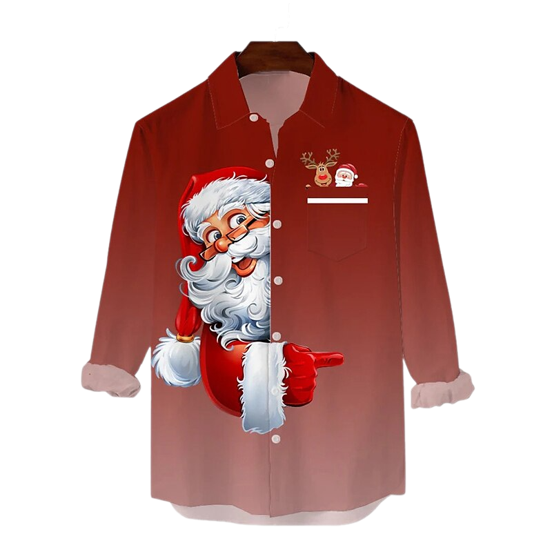 Get ready to spread the joy with our Santa Claus Christmas Theme Shirt. This vibrant red shirt features a playful Santa graphic, giving a nod to the icon of the holiday season. Constructed from a lightweight fabric, the shirt offers a comfortable fit, making it perfect for holiday festivities or as a spirited casual wear piece.