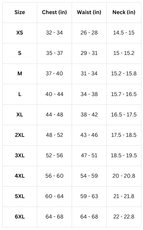 Size Chart (Inches):