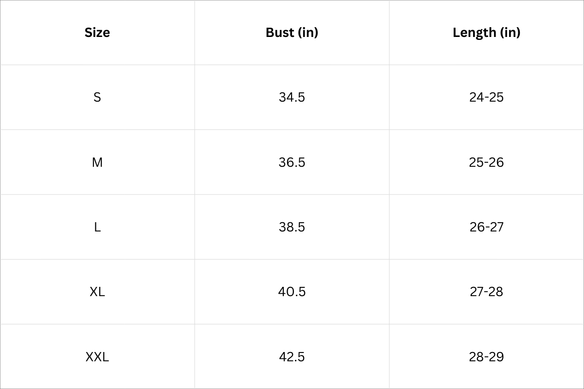 Size Chart (Inches):