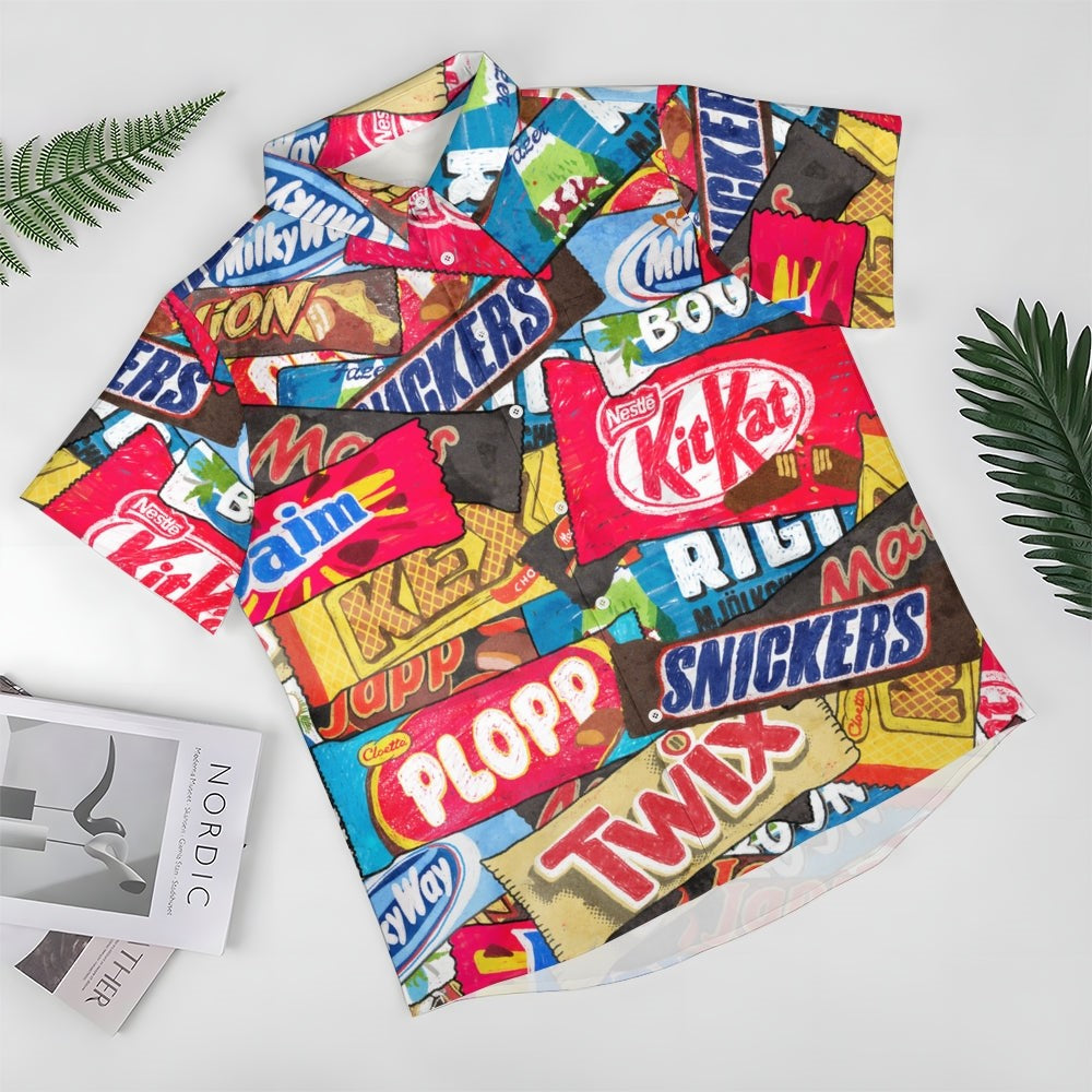 Enhance your summer attire with the Snack Print Casual Short Sleeve Shirt, ideal for vacation, beach outings, and everyday wear. This versatile shirt combines comfort and style, making it a must-have for warm weather.