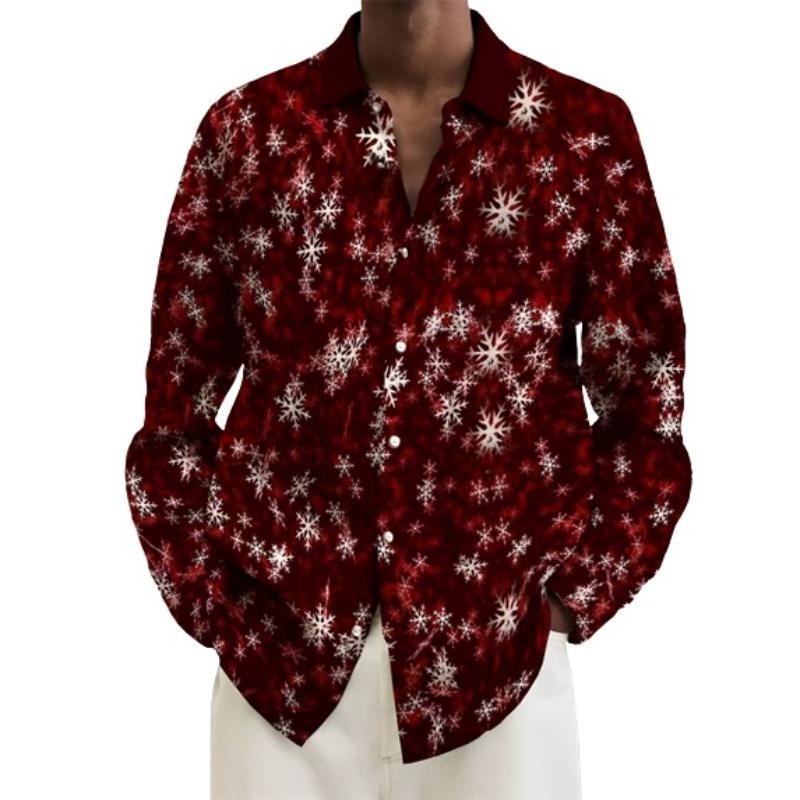 Embrace the enchantment of the season with our Snowflake Print Shirt. This elegant shirt, adorned with delicate snowflake prints, captures the winter wonderland, making it the perfect choice for festive celebrations. The playful prints add a festive flair, ensuring you're ready to create merry moments at holiday parties. spreading joy and elegance throughout the festive season.