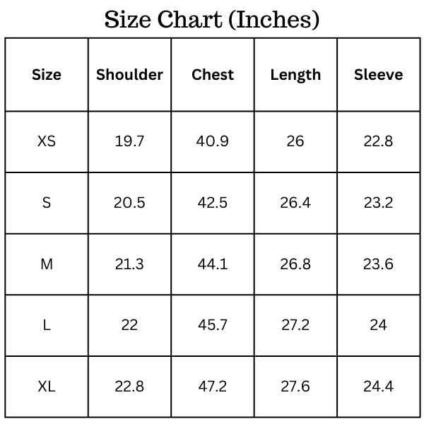 Size Chart(inches):