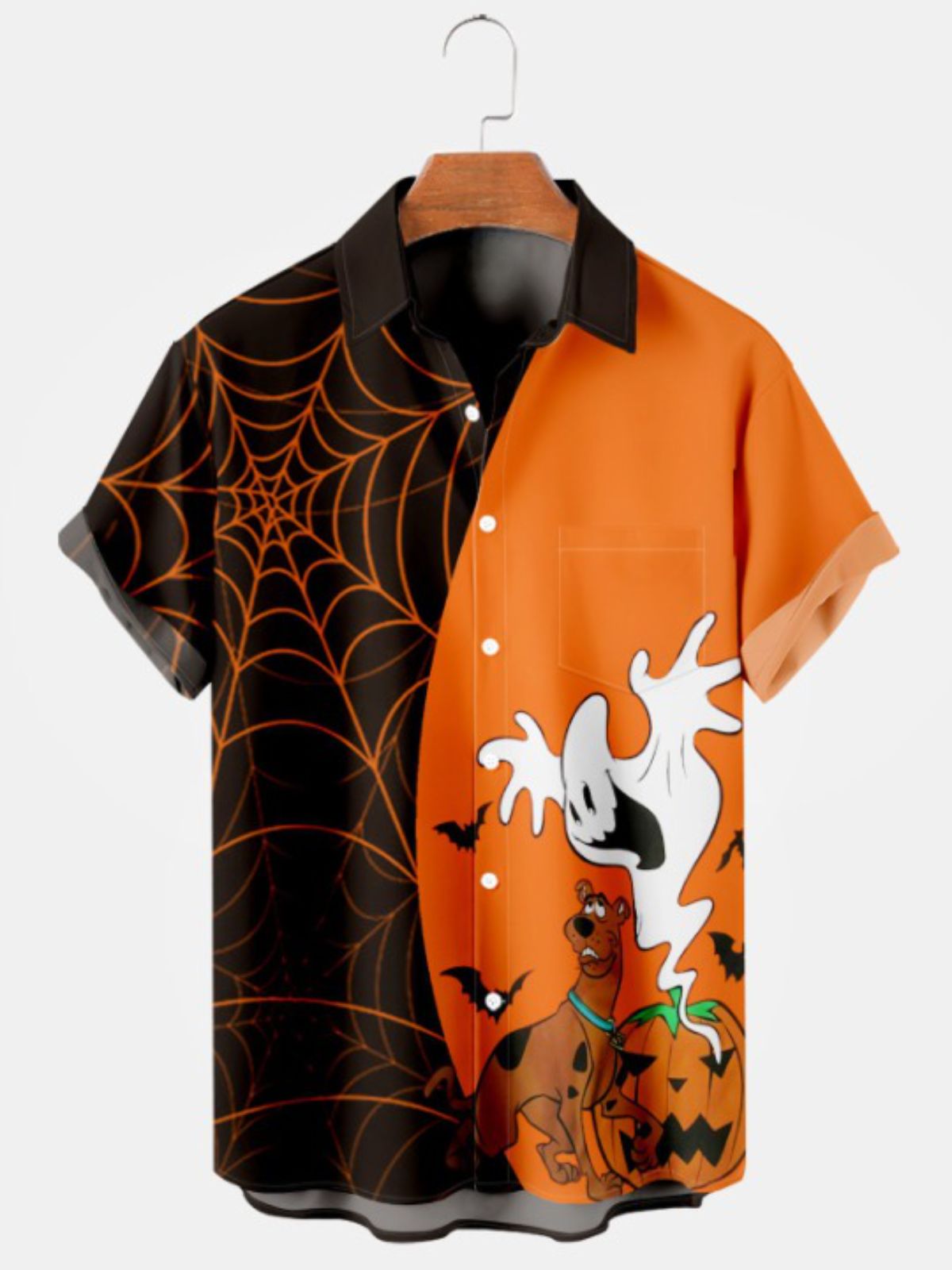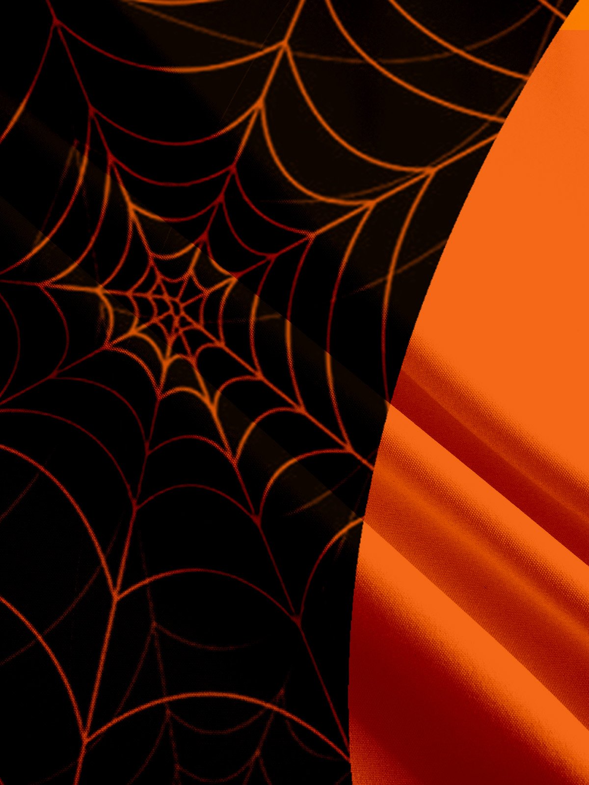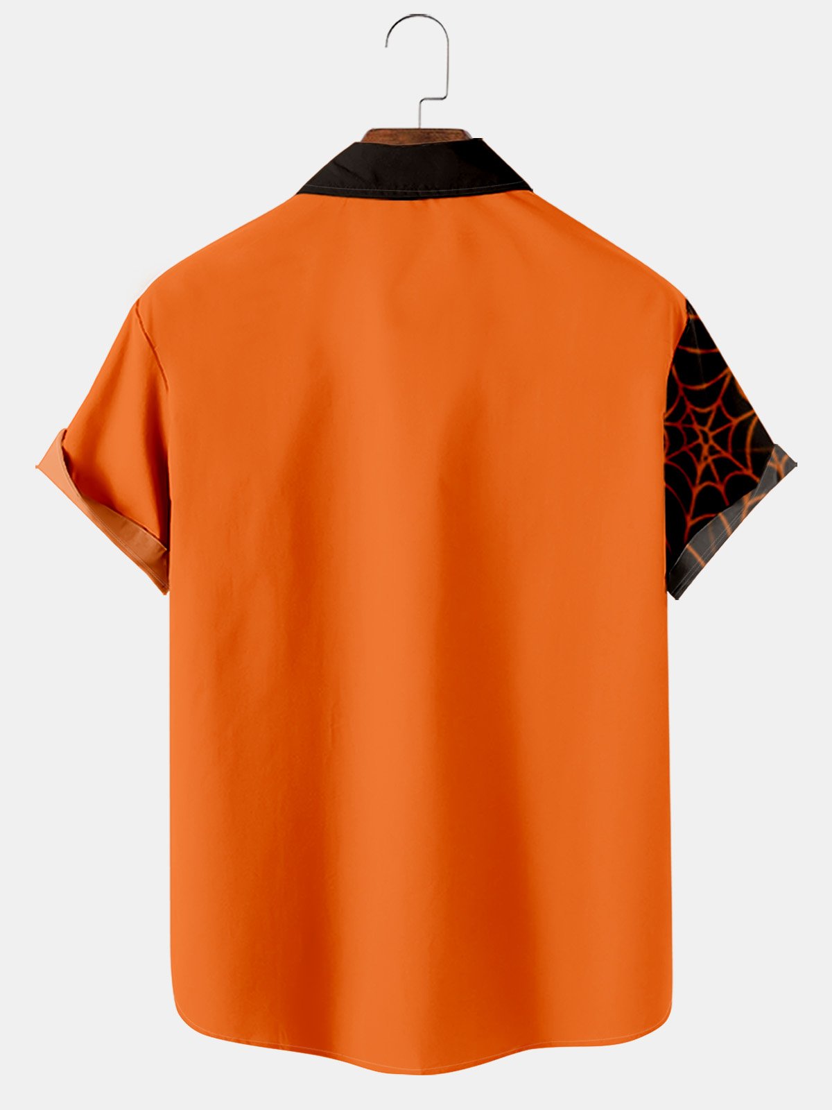 Step up your Halloween game with our Spider Web Print Short Sleeve Shirt. Crafted with a shirt collar neckline and short sleeves, it's designed for both style and comfort. The Halloween-inspired spider web pattern creates a unique look. Plus, its non-stretchy fabric ensures a tailored fit that's perfect for any occasion.