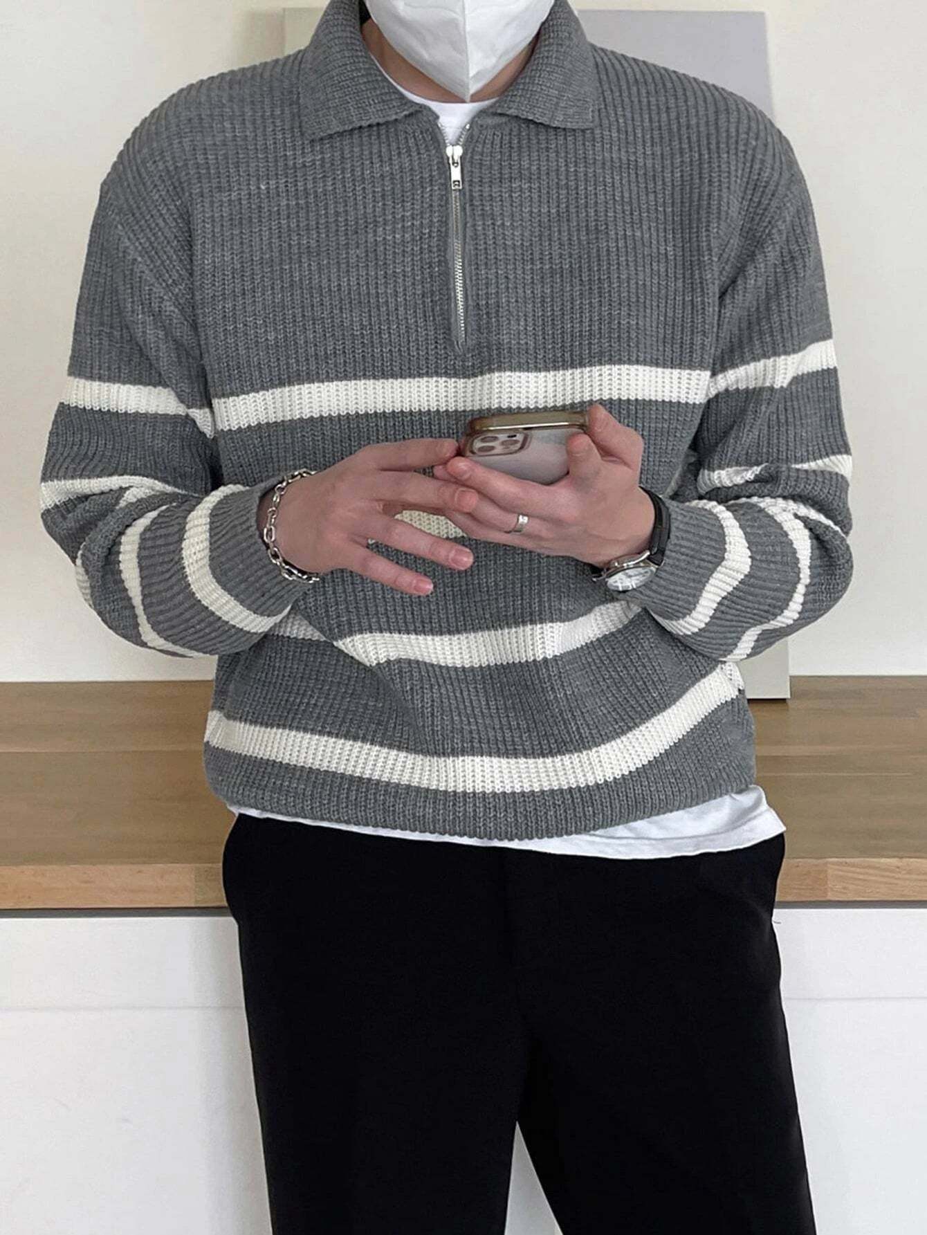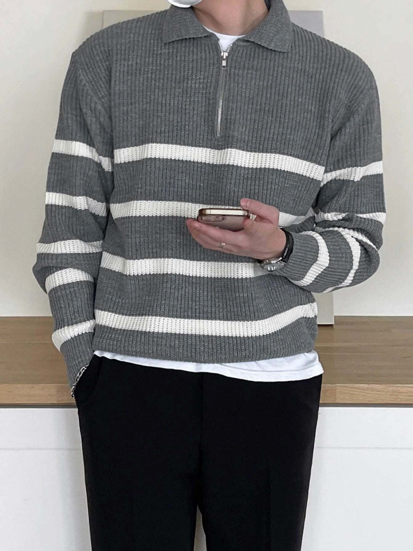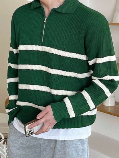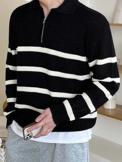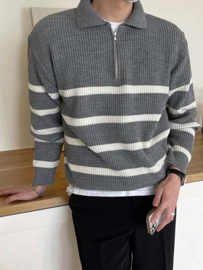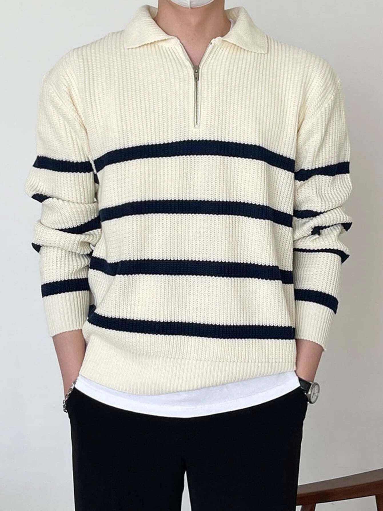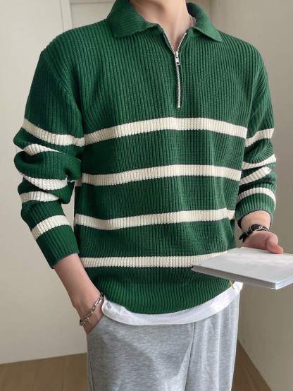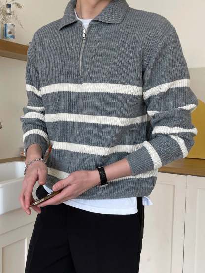 Add a touch of sophistication to your wardrobe with our Striped Pattern Sweater. This versatile pullover boasts a regular fit and a classic polo neckline, perfectly complemented by its long regular sleeves. Crafted from medium-stretch fabric, this sweater effortlessly combines comfort with a stylish, timeless striped pattern.