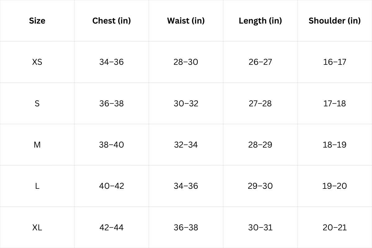 Size Chart (Inches):