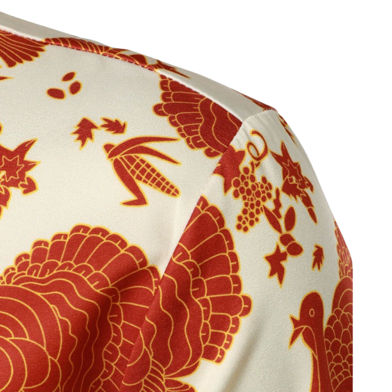Celebrate the season in style with our Thanksgiving Holiday Button Long Sleeve Shirt, crafted from a blend of 97% polyester and 3% spandex for a comfortable and flexible fit. Whether gathering with family or enjoying festivities, this shirt blends festive charm with modern comfort.