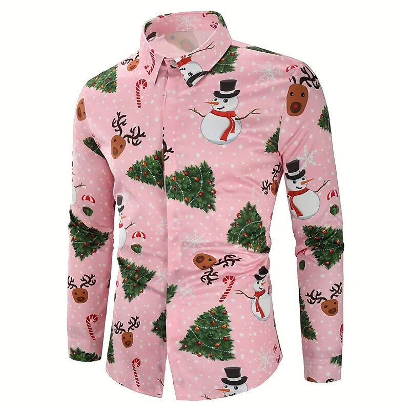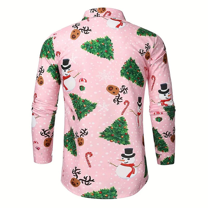 Bring the joy of the holiday season to your wardrobe with this Joyful Tree And Snowman Print Shirt. Decorated with a charming and whimsical pattern of snowmen and Christmas trees, this shirt is a cheerful addition to your festive attire. The soft, comfortable fabric is perfect for all-day wear during the festive season. The turndown collar and long sleeves offer a smart and stylish look, perfect for any casual holiday event or a cozy night in.