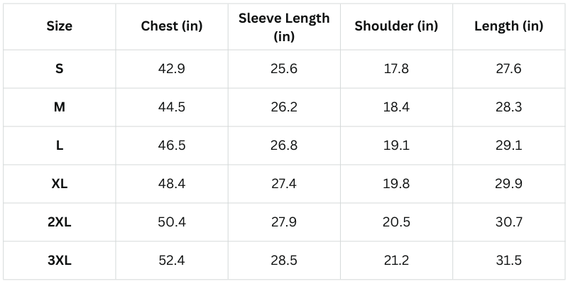 Size Chart (Inches):
