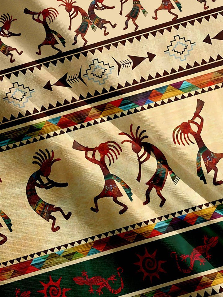 Saddle up in style with our Vintage Western Kokopelli Contrast Print Shirt. This shirt pays homage to the Wild West with its Cowboy and Kokopelli pattern. Its relaxed fit and non-stretchy fabric provide comfort and authenticity. Perfect for those who appreciate the timeless appeal of Western fashion.