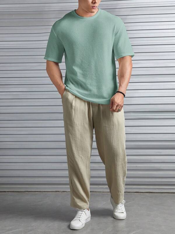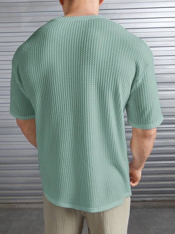 Indulge in comfort with Waffle Pattern Short Sleeve T-Shirt. This stylish tee features a delightful waffle pattern texture that adds a touch of dimension to the classic short sleeve design. Elevate your wardrobe with our Waffle Pattern Short Sleeve T-Shirt and experience the perfect combination of comfort and fashion-forward style.