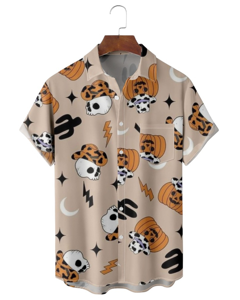 Saddle up for a spooktacular Halloween with our Western Cowboy Halloween Short Sleeve Shirt! With its classic cowboy design and Halloween-inspired details, this shirt is a must-have for costume parties or themed events. The lightweight fabric ensures comfort, while the bold print adds a touch of Wild West adventure to your outfit.